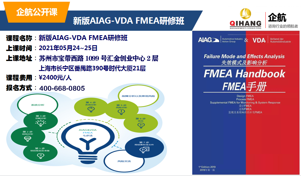 企航咨詢根據最新發布的AIAG&VDA FMEA(第一版)要求,從FMEA角度和實際的應用案例,系統講解新版FMEA的背景,重要變化點及企業如何應對等,并針對性極強地講解DFMEA、