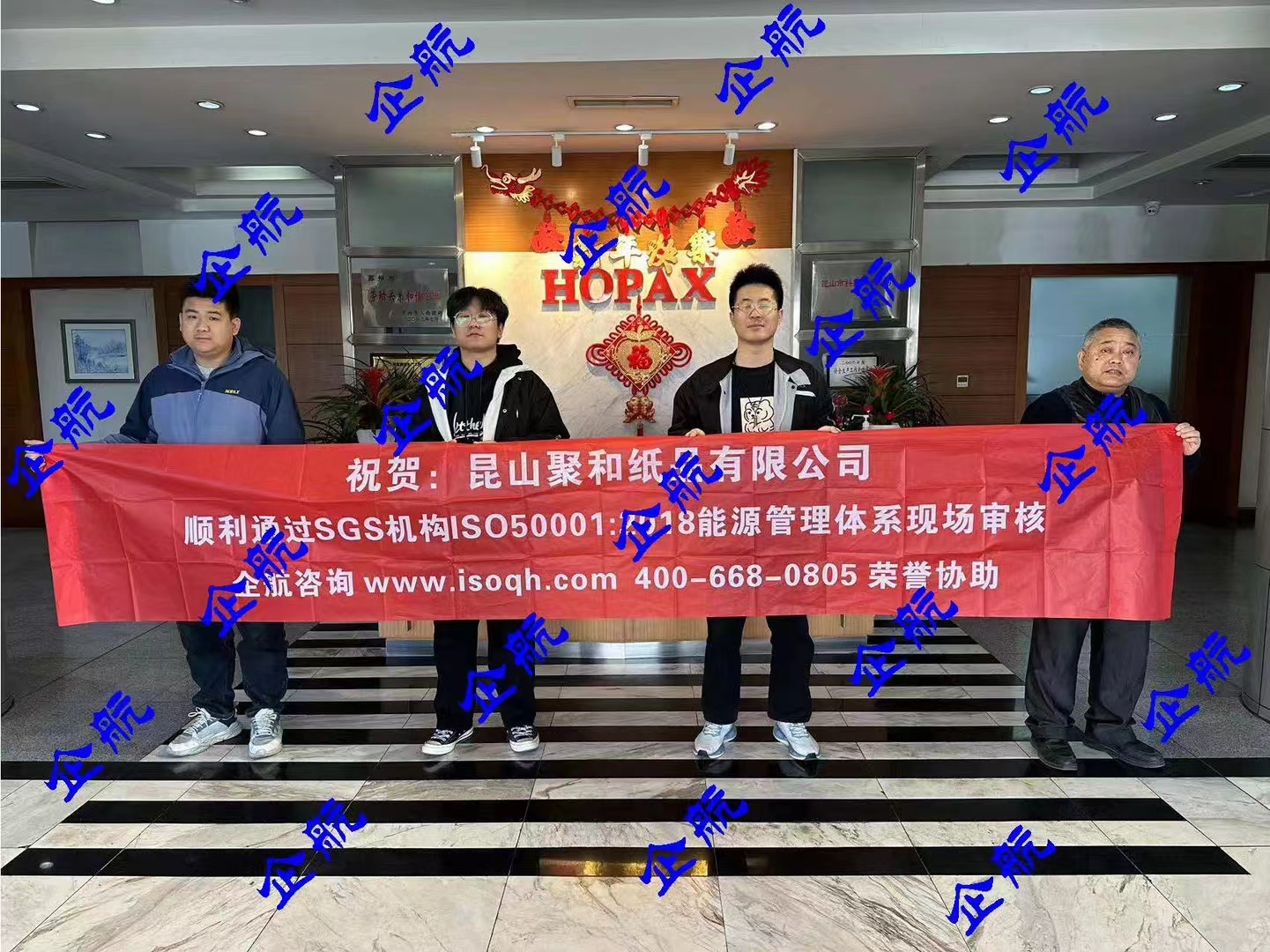 | 企航祝賀昆山聚和紙品有限公司順利通過SGS機構ISO50001能源管理體系審核 |