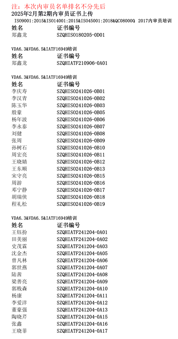 2025年2月第2期內審員證書上傳